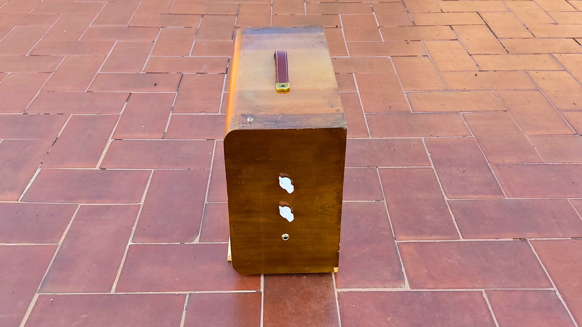 This beauty of a vintage radio now has a new life as a LOUD guitar amp! Warm tones, hot overdrives, and a heartbeat tremolo that will delight your ears! Just plug your guitar an hear it for yourself! It has volume and gain controls and the tremolo has speed and dwell controls. It's powered by a 9V battery or a DC adapter (9V, negative center)