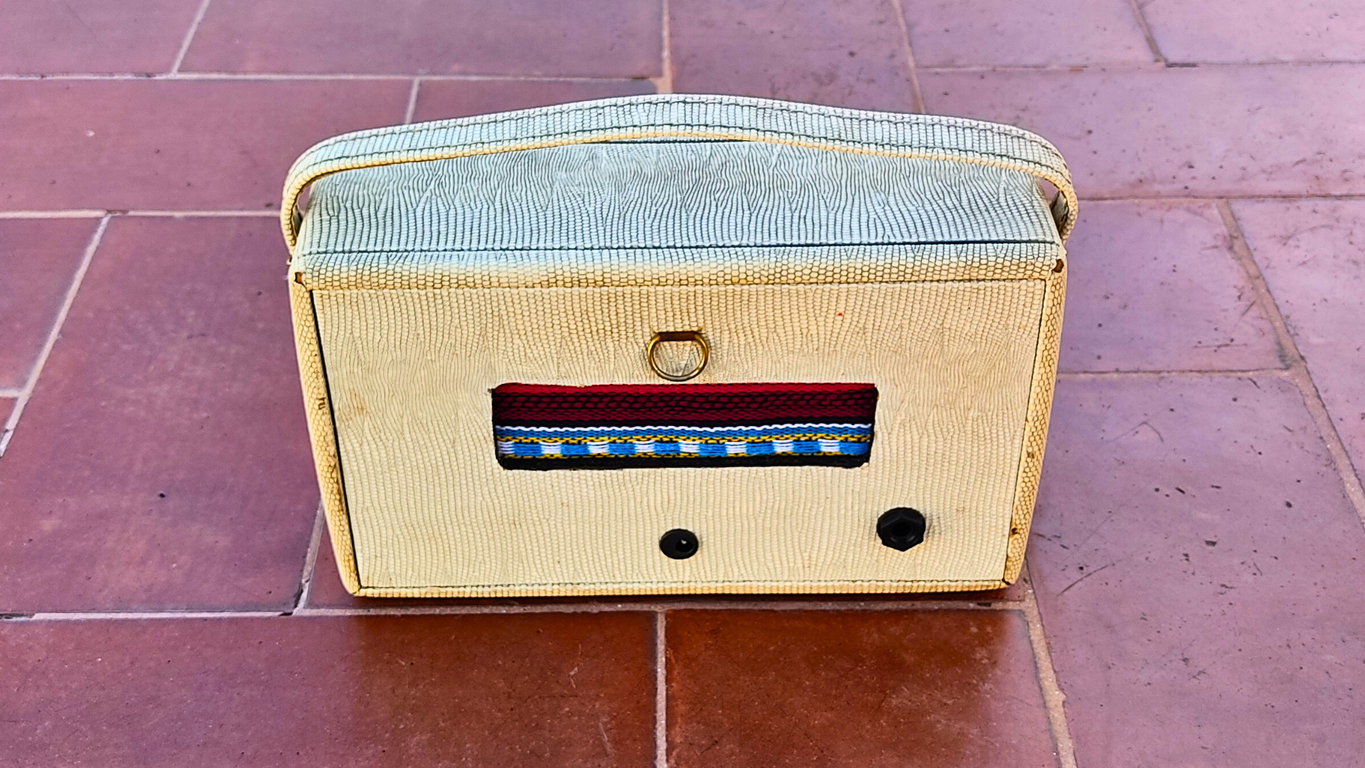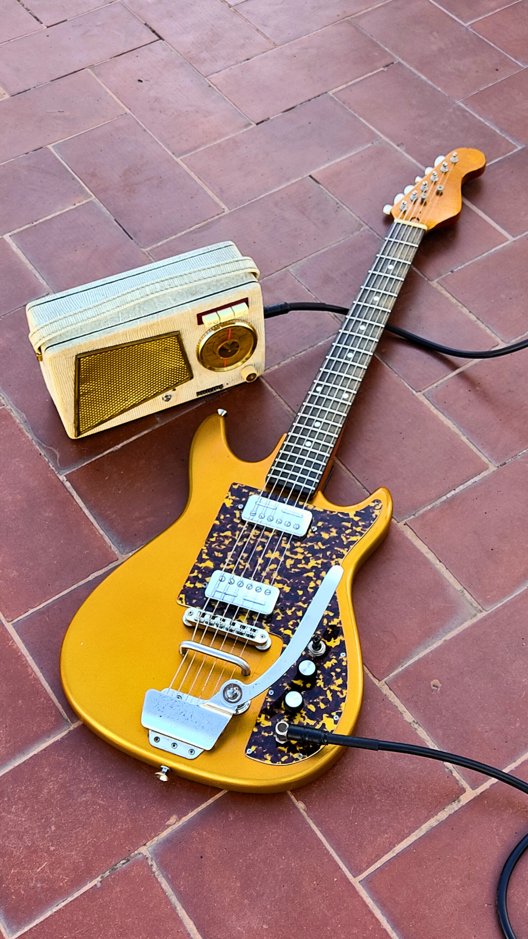 This one does justice to its name! a 1950s vintage Philips radio got converted into a savage guitar amp! The radio dial is the volume control and the small knob is the gain control. It has a line out jack in the back panel so you can use it with larger speakers. It's powered by a 9V battery or a DC adapter (9V, negative center)