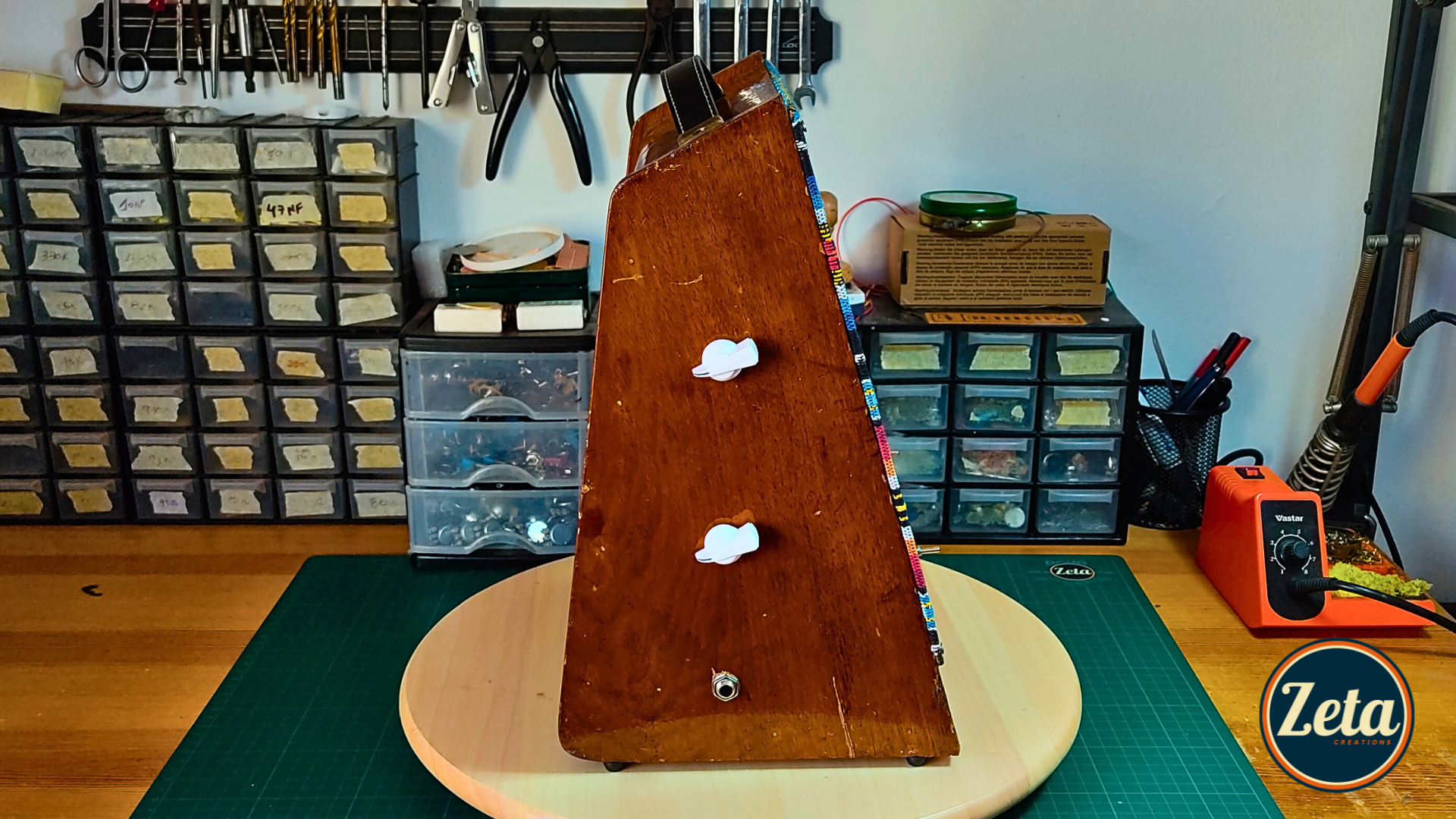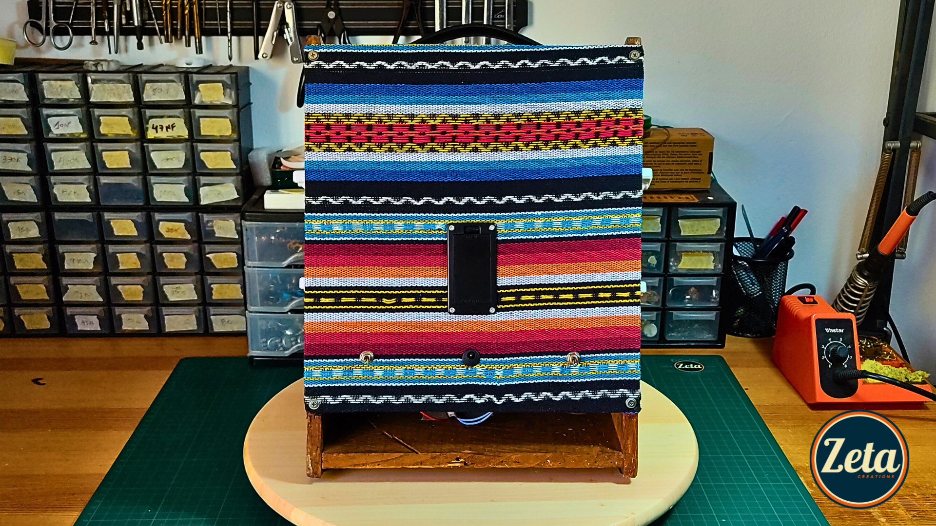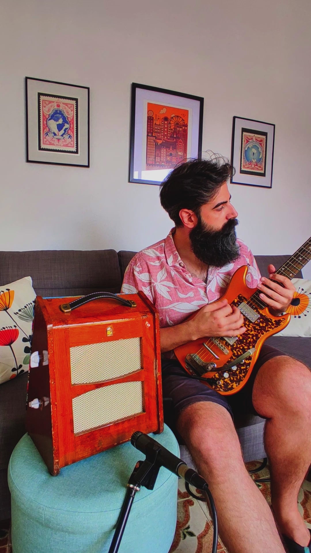 What used to be a Philips speaker hunged on some wall making announsments is now a terrific guitar amp! I took some liberties and flipped the box so it has a place to sit! The amp itself has a volume and gain controls and the built in tremolo has a speed and dwell controls. It sounds AMAZING, from clean tones and warm heartbeatlike sounds with the tremolo, to fiery fuzzy overdrive, this amp is a must! and check out that back panel!!!! pretty cool, uh? It's powered by a 9V battery or a DC adapter (9V, negative center)